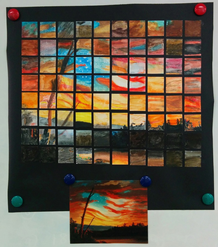 The students studied these paintings and tried their best to capture the rich colors and textures such as The Oxbow painted by Thomas Cole and Our Banner in the Sky painted by Frederick Church.